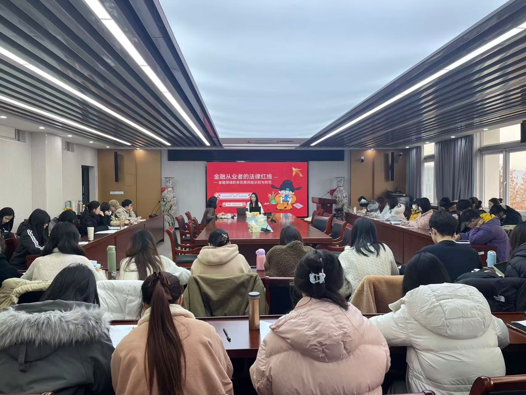 讲座中,李莹律师结合自身丰富的执业经验,围绕金融领域职务犯罪相关核心内容展开深入解读,内容架构清晰、重点突出。首先,她聚焦金融反腐新形式与职业风险,分析了当前金融反腐的整体态势,明确了新形势下金融从业者面临的各类职业风险点;随后,针对金融领域职务犯罪的核心界定进行阐释,帮助与会学生厘清职务犯罪的核心构成要素与认定标准。考虑到金融行业新人的成长需求,讲座专门设置了“从实习到入职的防火墙”板块,为学生提供了针对性的风险防范建议,助力其从职业生涯初期就树立正确的合规理念。最后,李莹律师围绕“底线思维与职业生命线”展开论述,强调了坚守法律底线对金融从业者职业发展的重要性,引导大家将合规意识融入日常工作的每一个环节。
