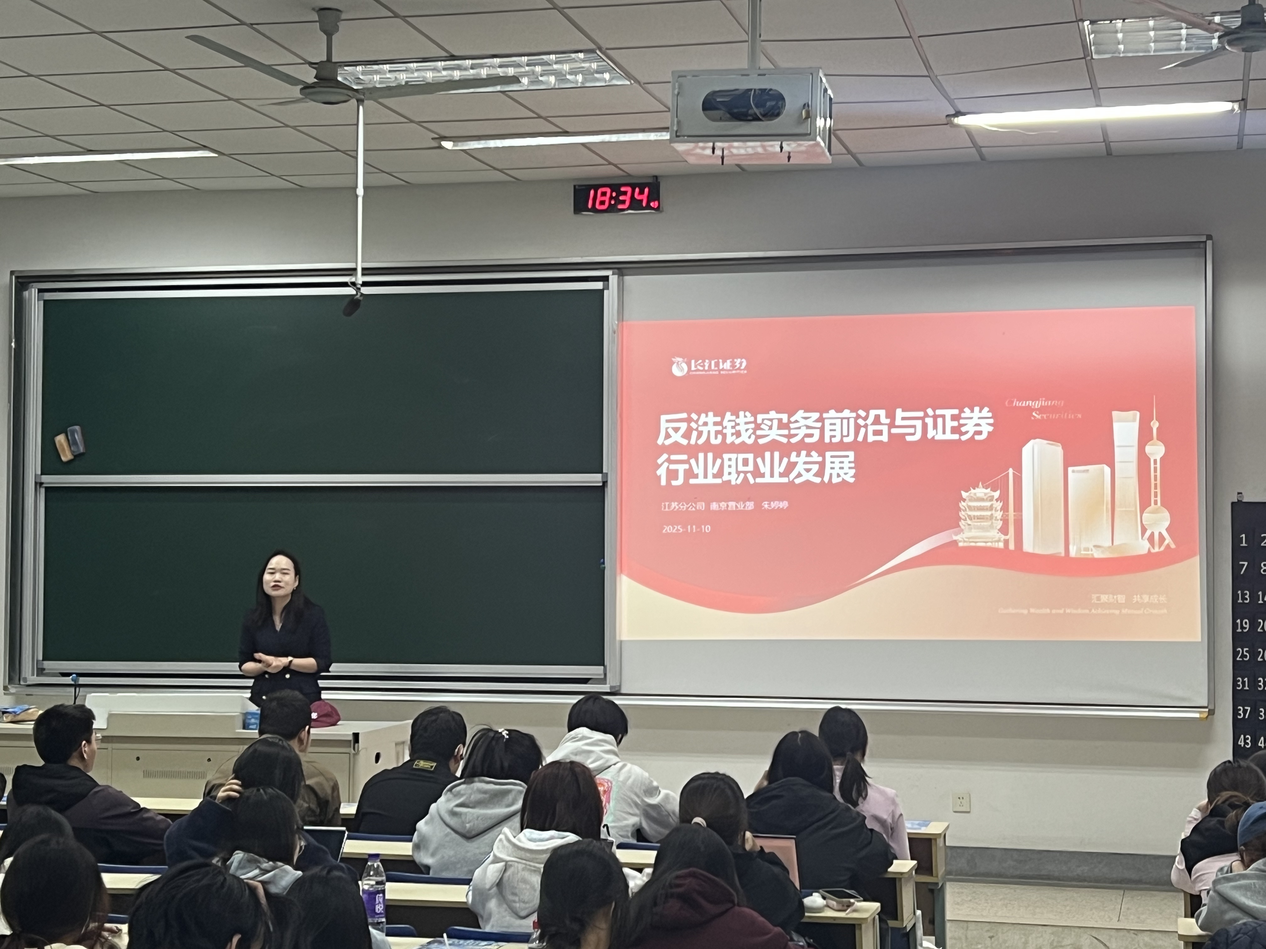 11月10日,网上投注app 邀请长江证券江苏分公司投资顾问朱婷婷老师,举办“反洗钱实务前沿与证券行业职业发展”主题讲座。本次讲座紧扣2025年第五轮反洗钱国际评估背景,深入剖析我国当前反洗钱工作的最新动态和证券行业实践。