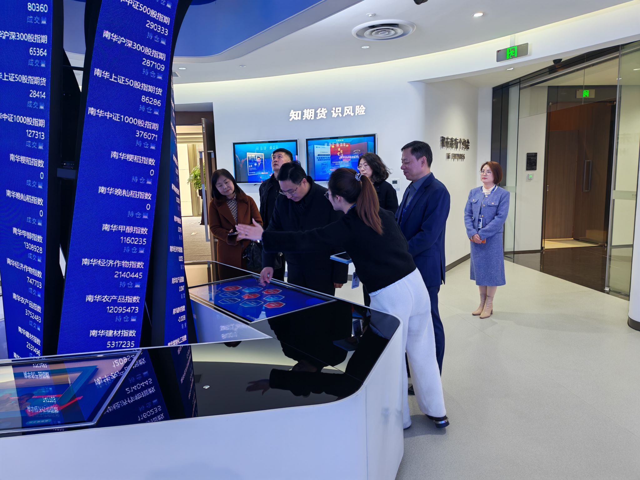 校企合作签约授牌仪式在南华期货股份有限公司举行。南华期货副总经理王正浩、南通营业部总经理倪小雷、投资学院执行院长章玲飞、研究院副院长顾双飞、人力资源部经理叶向微等企业代表参加仪式。朱军部长一行参观了南华期货总部大楼及投资者教育基地,随后双方签订就业实习基地协议并完成授牌。座谈交流环节,校企双方分别介绍了各自发展情况,围绕学生实习实践、就业推荐、人才联合培养、普惠金融推广与国民金融素养教育等议题展开深入交流,达成多项合作共识。朱军部长表示,此次合作为学校搭建了金融实践与行业对接平台,学校将以此为契机优化人才培养方案,引入行业前沿知识,推动教学与实践深度融合,培养高素质金融人才,助力学生高质量就业,为行业发展贡献力量。